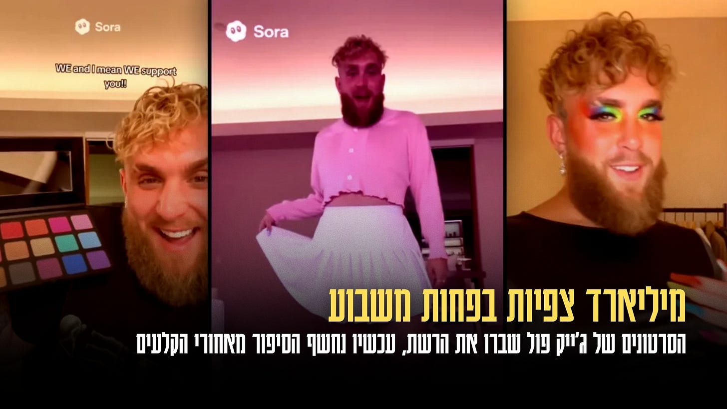 בשבוע האחרון הרשתות החברתיות התמלאו בסרטונים של אושיית הרשת ג׳ייק פול: יוצא מהארון, לבוש בבגדי נסיכה, מספר סיפור בזמן שהוא שם מייקאפ ועוד ועוד. אלא שכל הסרטונים האלו שהגיעו למיליונים הם דיפ-פייקים שנוצרו בידי אפליקציית Sora.