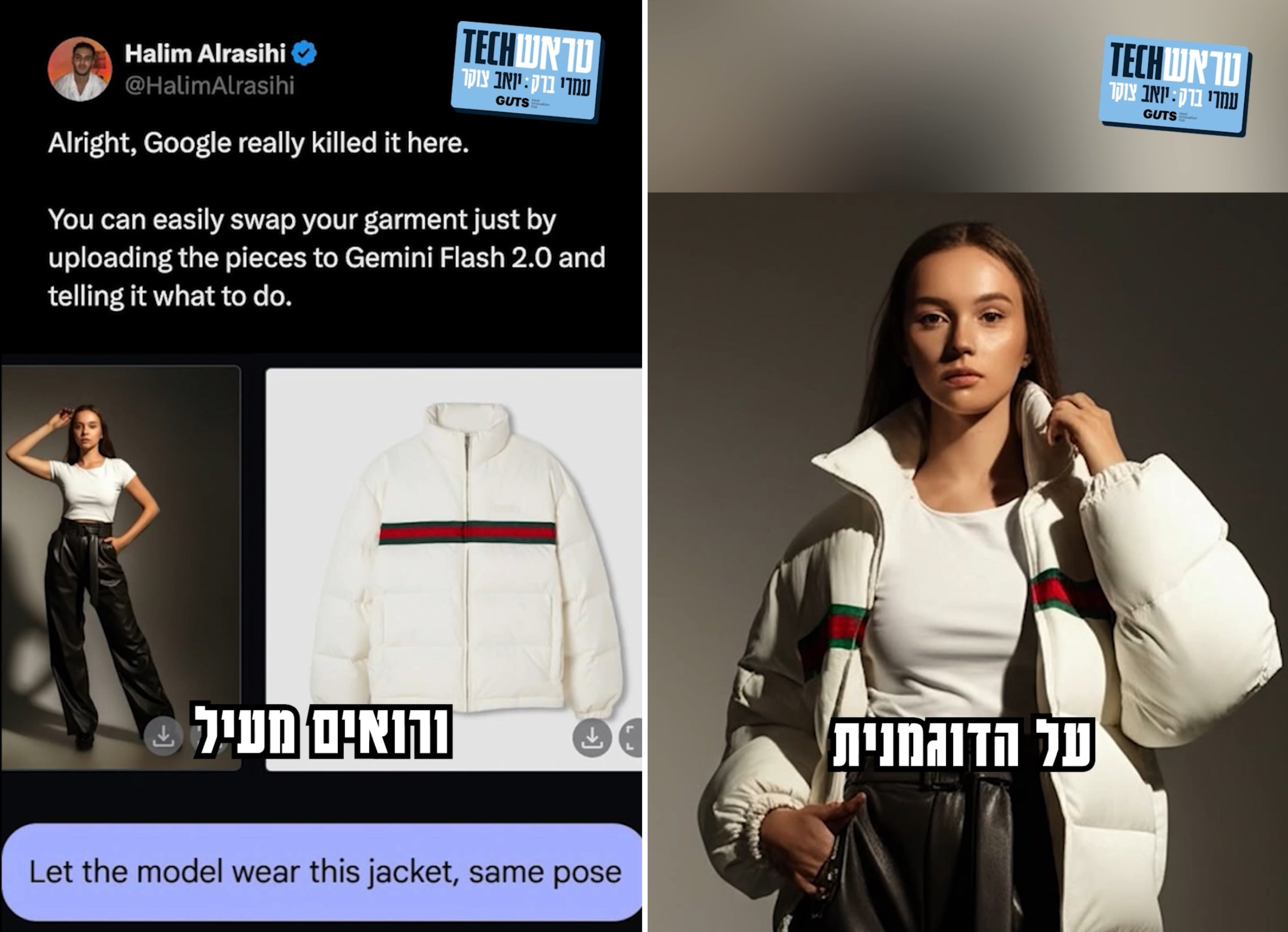 גוגל הציגה לאחרונה את גרסת ה־Gemini 2.0 Flash המאפשר לכל אחד לערוך תמונה באמצעות משפט טקסט פשוט: במשפט תוכלו לבקש מהמודל להסיר אובייקטים בתמונה, דוגמה אחרת ברשת הציגה בקלות איך אפשר לקחת תמונה של דוגמנית, ותמונה של מעיל ופשוט לבקש מהמודל שהמעיל יהיה על הבחורה בתמונה. צפו בהדגמה: