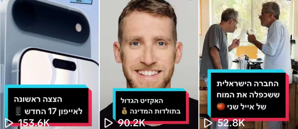 השבוע, 3 סרטונים שפרסמנו בטראשטק הגיעו לחשיפה של כמעט 300 אלף צפיות בטיקטוק (יש לנו כ-10 אלף עוקבים), כמעט 120 אלף צפיות באינסטגרם וכמעט 100 אלף צפיות בפייסבוק. השקיעו ביצירת תוכן, היו קונסיסטנטיים ומחויבים לתהליך - זה בדיוק הזמן.
