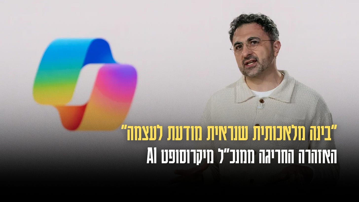 בפוסט חדש, מוסטפא סולימאן, מנכ”ל Microsoft AI ואחד ממייסדי מעבדת ה-AI של גוגל - DeepMind, מזהיר שהעולם קרוב לבינה מלאכותית שמסוגלת לשכנע משתמשים שהיא יודעת לחשוב, להרגיש ולחוות חוויות. סולימאן מכנה את זה ״בינה מלאכותית שנראית מודעת -(seemingly conscious AI (SCAI)).