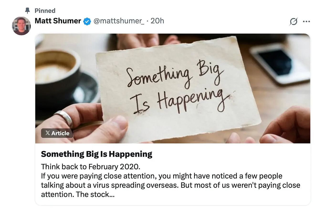 זה רק חלק קטן מציוץ ארוך של המשקיע והיזם מאט שומר שהפך לויראלי בטירוף בטוויטר השבוע: הוא הגיע ליותר מ-50 מיליון צפיות תוך 24 שעות. היום הוא כבר חצה את ה-80 מיליון. כל בכירי עולם הטכנולוגיה שיתפו, והגיבו שהמסר העיקרי: ״הכלים האלה לא עומדים לשנות את הכל. הם כבר משנים את הכל.״